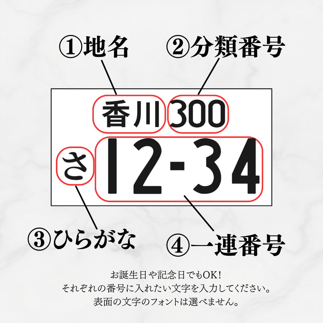 (例:①香川 ②300 ③さ ④1234)